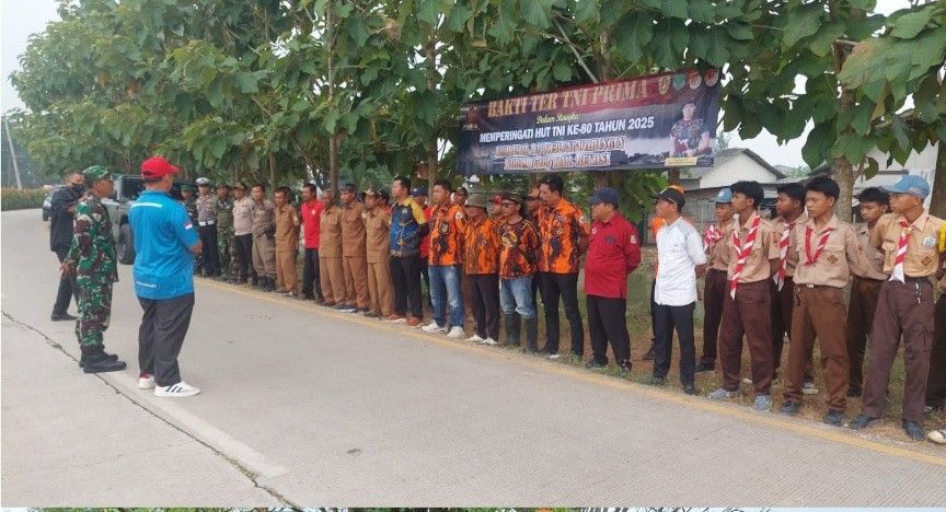 KAB BEKASI,Globalindo.Net – Menjelang Hari Ulang Tahun (HUT) ke-80 Tentara Nasional Indonesia (TNI), Koramil 13 /Kedung Waringin Kodim 0509/ Kabupaten Bekasi berkolaborasi dengan Polsek Muspika Kecamatan Kedungwaringin Pemerintahan desa, Satpol PP, Organisasi masyarakat, Para pelajar dan warga desa Waringin jaya, melaksanakan kegiatan Bakti Teritorial Prima TNI melalui gotong royong kerja bakti membersihkan sampah-sampah di sekitar lingkungan Jalan Raya Pantura di Kp.Kosambi RT.001/012 Desa Waringinjaya,Kecamatan Kedungwaringin Kabupaten Bekasi Pada Jum’at.19/09/2025.