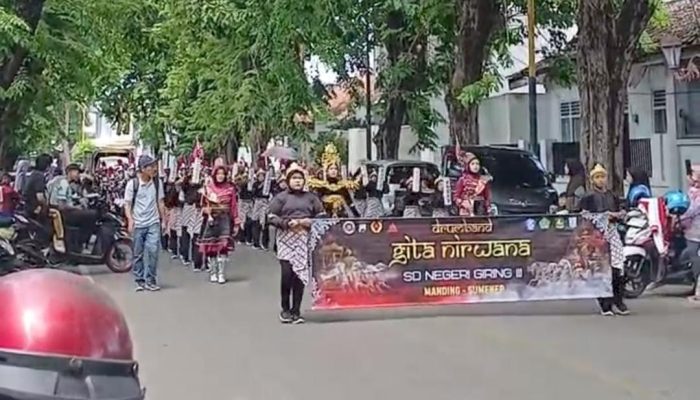 Drumband Gita nirwana SDN giring 3 mengikuti perlombaan festival drumband pelajar 2025 kabupaten Sumenep yang dikuti oleh kurang lebih 40 peserta drumband dari tingkat TK SD dan SMP