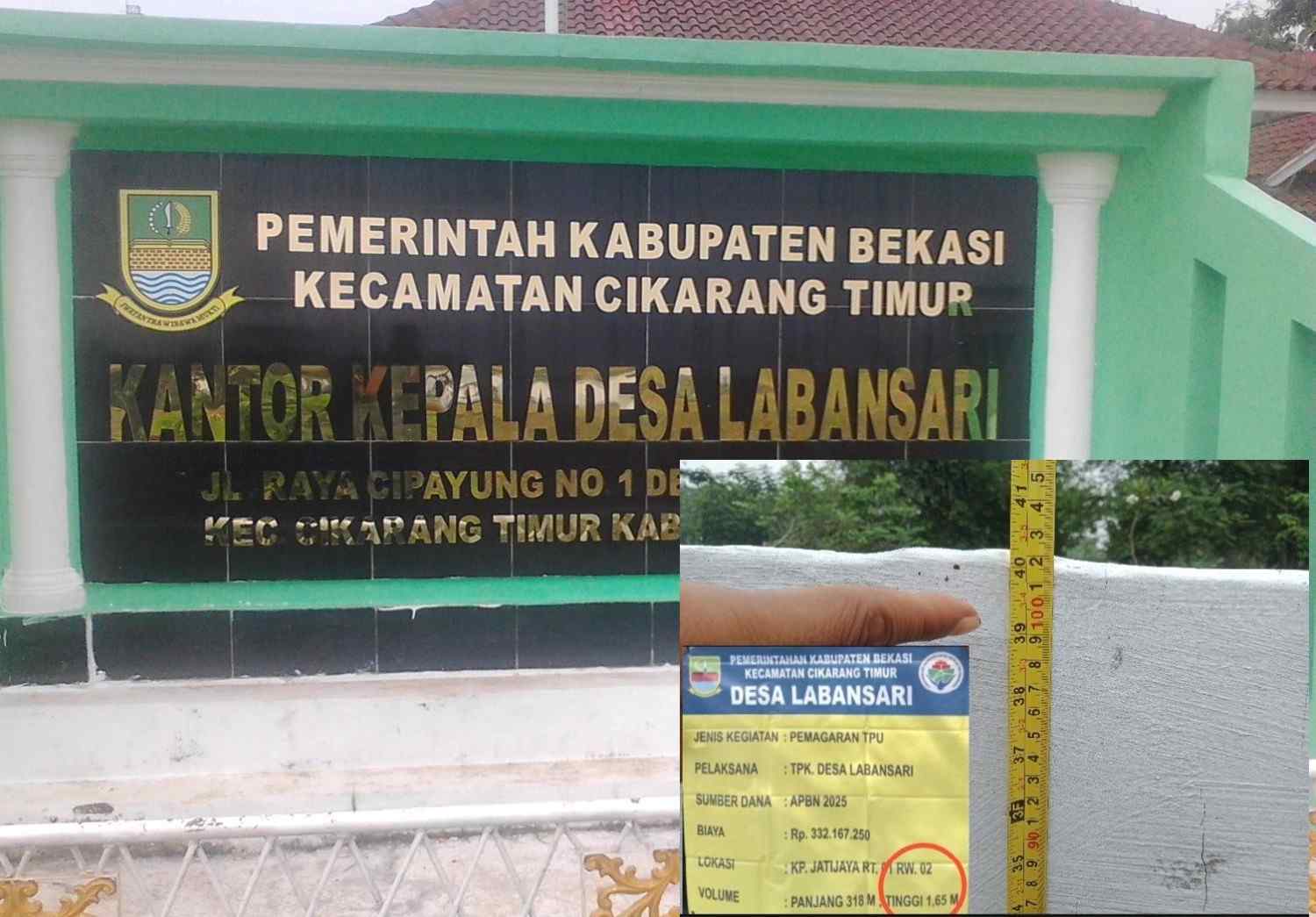 KAB. BEKASI, Globalindo.Net – Dugaan yang menguatkan adanya unsur korupsi kegiatan Pemagaran TPU Kp. Jati Jaya Rt.01/02 Desa Labansari Kecamatan Cikarang Timur Kabupaten Bekasi, yang menelan anggaran sebesar Rp. Rp. 332.167.250 (tiga ratus tiga puluh dua juta seratus enam puluh tujuh ribu dua ratus lima puluh) rupiah, bersumber dari Dana Desa APBN Tahun 2025.