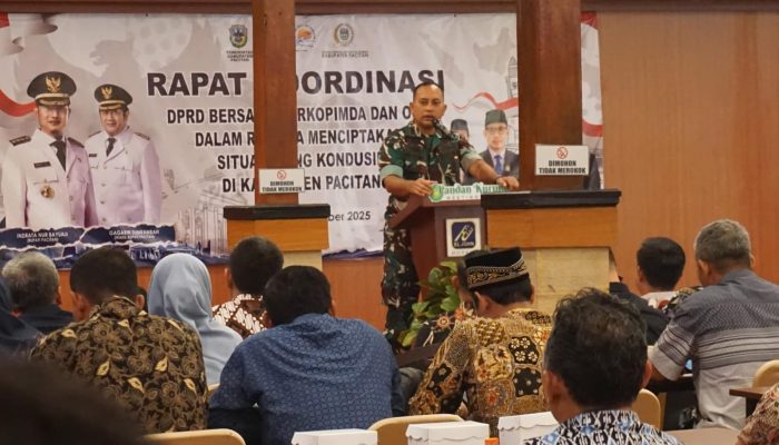 Pacitan, – Dalam rangka menciptakan situasi yang kondusif di wilayah Pacitan serta untuk meningkatkan sinergi dan koordinasi antara DPRD, Forkopimda, dan perangkat daerah, Dandim 0801/Pacitan bersama para unsur Forkopimda adakan rapat koordinasi, bertempat ruang rapat pandan kurung parai hotel beach resort telengria lingkungan teleng ria, Kel. Sidoharjo Kec/Kab. Pacitan, Kamis (25/9/2025).