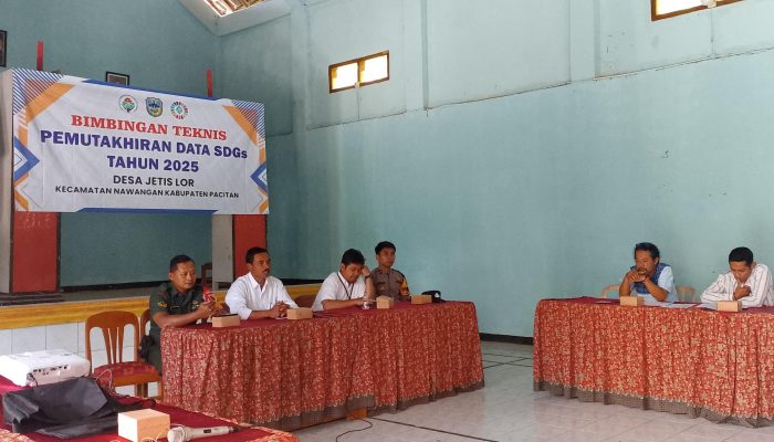 Pacitan, – Sebagai upaya untuk memastikan akurasi dan relevansi data dalam pencapaian Tujuan Pembangunan Berkelanjutan atau Sustainable Development Goals (SDGs), Sertu Suryo selaku Babinsa Koramil 0801/05 Nawangan lakukan pendampingan Bimtek terhadap operator data dari Desa Jetis Lor yang mengikuti Bimbingan Teknis Pemutakhiran Data SDGs Tahun 2025, Kegiatan tersebut di gelar di Balai Desa Jetis Lor, Kecamatan Nawangan, Kabupaten Pacitan, pada Rabu (1/10/2025).