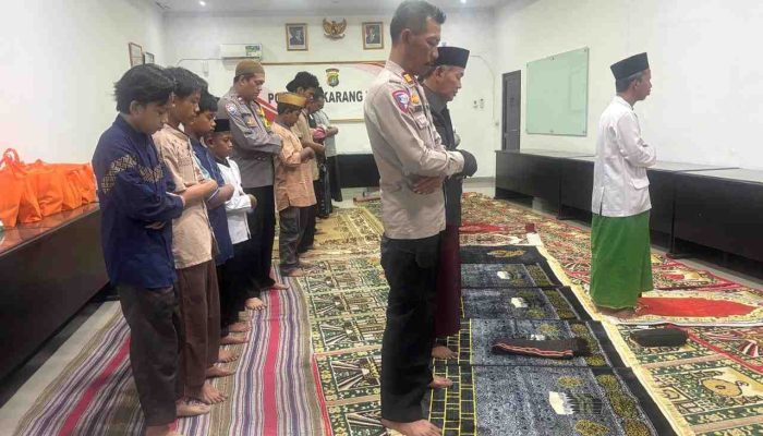 KAB BEKASI, Globalindo.Net – Sebagai Wujud kepedulian sosial dan mempererat hubungan dengan masyarakat, serta sebagai bentuk rasa syukur kepada Alloh.SWT.Polsek Cikarang Timur menggelar Sholat Maghrib berjamaah, do’a bersama dan Santunan anak yatim.