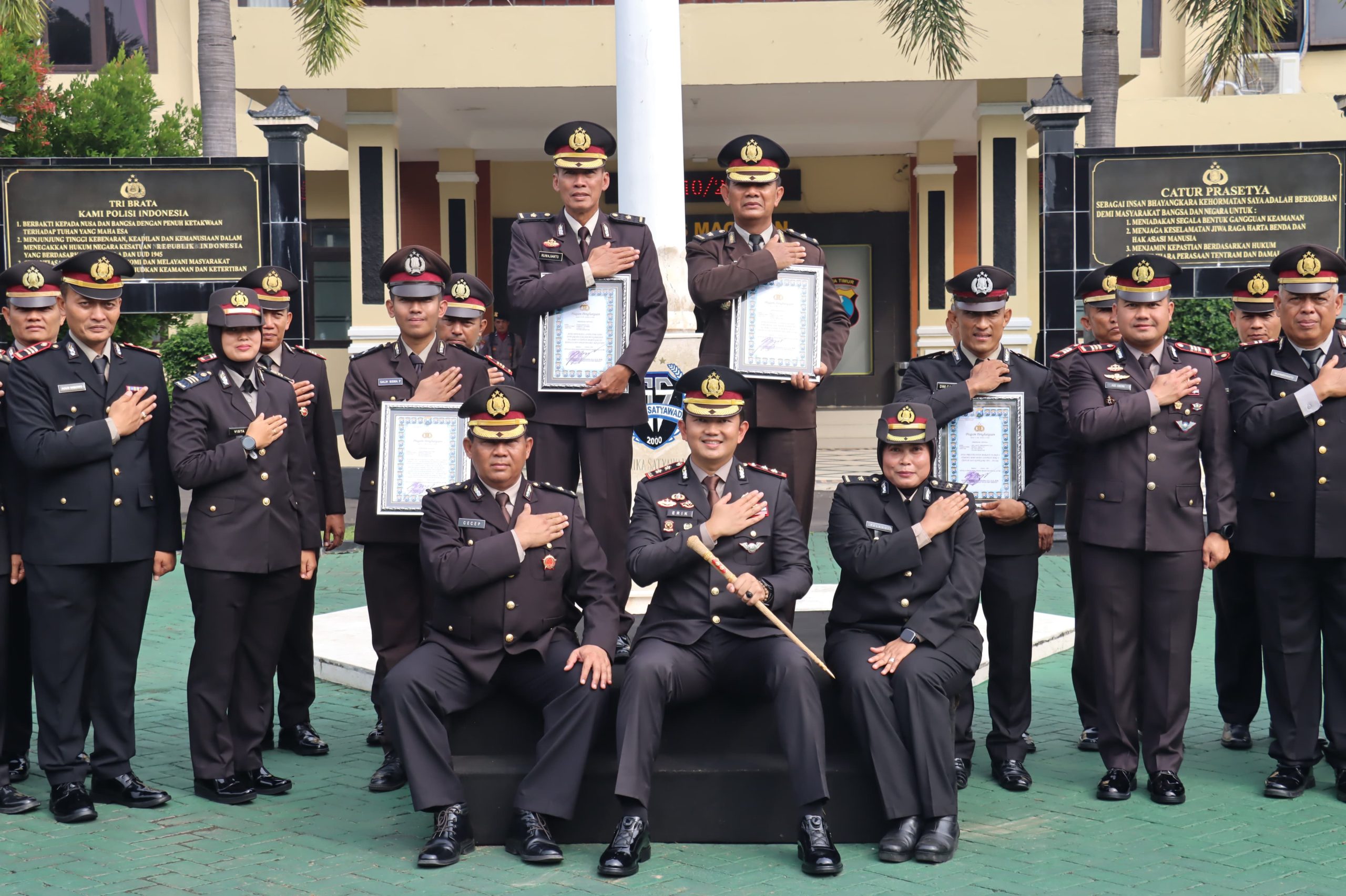 Selain itu, penghargaan juga diberikan kepada dua perwira, yaitu Kompol Ruwahjianto Kabag Logistik dan Kompol Sini Kabag Ops, yang telah menyelesaikan masa dinas dan memasuki purna tugas dengan pengabdian selama 38 tahun.