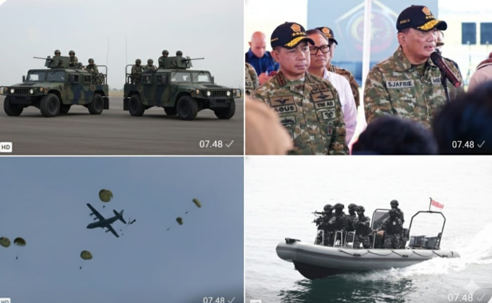 BANGKA, Globalindo.Net – TNI mengerahkan puluhan ribu prajurit dari tiga matra dalam Latihan TNI Terintegrasi Tahun 2025 sebagai demonstrasi kekuatan nasional sekaligus wujud komitmen melindungi aset strategis negara di Bangka Belitung dan Morowali. Menteri Pertahanan RI Sjafrie Sjamsoeddin didampingi Panglima TNI Jenderal TNI Agus Subiyanto, serta sejumlah pejabat negara menyaksikan langsung pelaksanaan latihan dari Titik Tinjau Desa Mabat, Bangka, Rabu (19/11/2025).