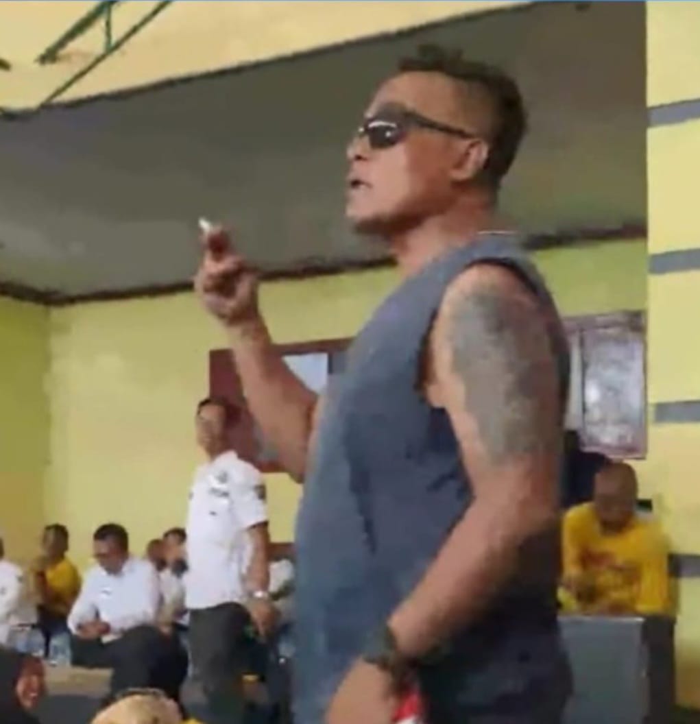 Nampak, Asep Ari sosok Kades di Ciamis, sambil merokok mengenakan kaos oblong dengan sebuah Tatto di lengannya begitu pongah dan jumawanya di sebuah acara dengan mengatakan, “Wartawan jeng aing (Wartawan dengan gua), Tanggung jawab aing! (Tanggung jawab gua), Aing moal mundur ku wartawan (Gua tidak akan mundur dengan wartawan), Diaduan ku aing! (Gua berani beradu)”.