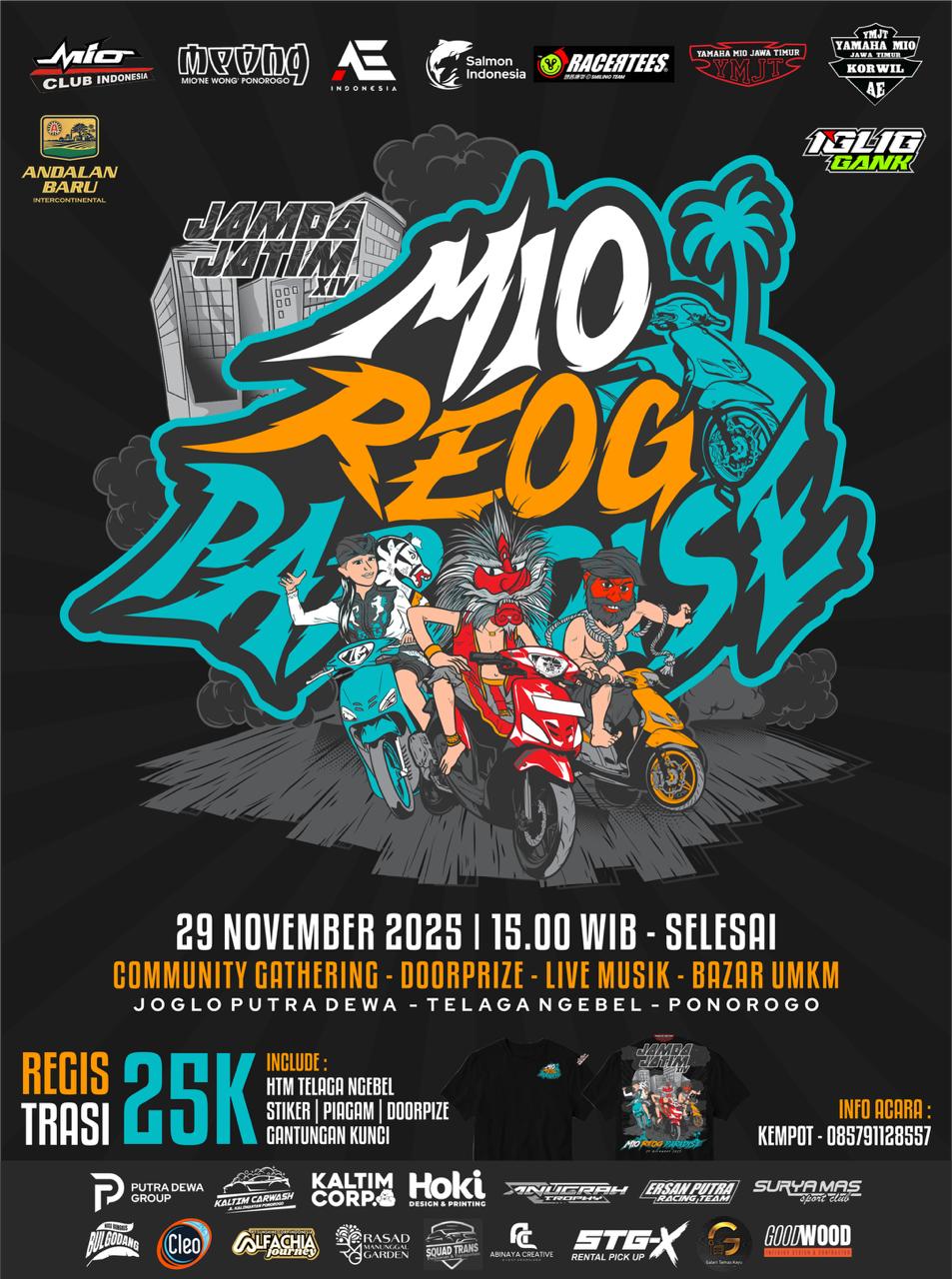 Event ini merupakan bagian dari rangkaian JAMDA JATIM XIV dan melibatkan berbagai komunitas besar seperti Mio Club Indonesia, komunitas Mio Wong Ponorogo(MEONG), serta sejumlah brand pendukung dunia otomotif.