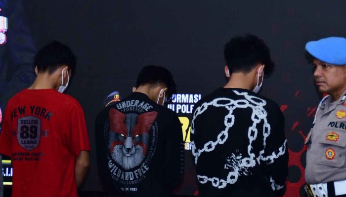 Polisi berhasil mengidentifikasi dan menangkap tiga orang tersangka, masing-masing berinisial AR (17), FR (19), dan NA (18). Sementara beberapa pelaku lainnya masih berstatus DPO. Dari tangan para tersangka, polisi mengamankan sejumlah barang bukti, di antaranya rekaman CCTV, satu buah celurit panjang berwarna ungu, serta satu unit sepeda motor Mio berwarna biru yang digunakan para pelaku.
