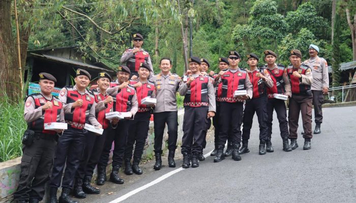 Kapolres Magetan AKBP Raden Erik Bangun Prakasa melaksanakan pemantauan langsung terhadap kegiatan Tim “Drogba” (dorong dan ganjal ban) Satsamapta Polres Magetan yang berjaga di jalur alternatif menuju kawasan wisata Telaga Sarangan, Minggu pagi (5/1/2026). Pemantauan ini dilakukan untuk memastikan kesiapan personel dalam memberikan pelayanan dan menjaga keselamatan pengguna jalan.