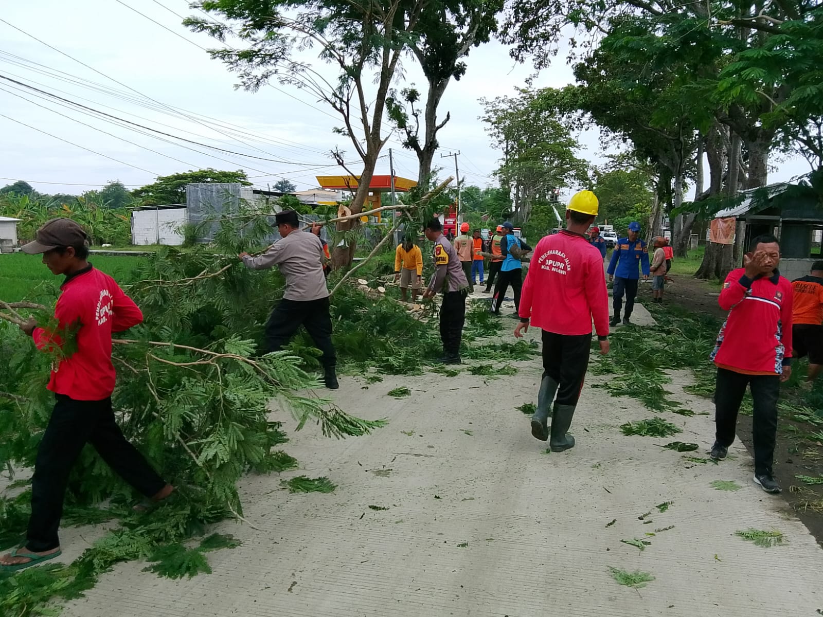 Selama kegiatan berlangsung, anggota Polsek Kwadungan melakukan pengaturan arus lalu lintas guna memastikan proses pemangkasan berjalan aman dan tidak menimbulkan kemacetan serta membantu menyingkirkan dahan yang sudah dipotong.