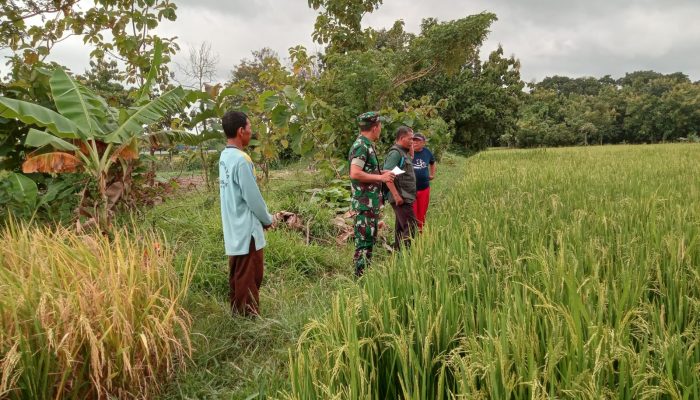 Babinsa Desa Pakah bersama PPL Kec. Mantingan dan masyarakat melakukan peninjauan perkembangan panen padi dan mengecek hasil dan harga padi dilapangan guna upaya meningkatkan swasembada pangan.
