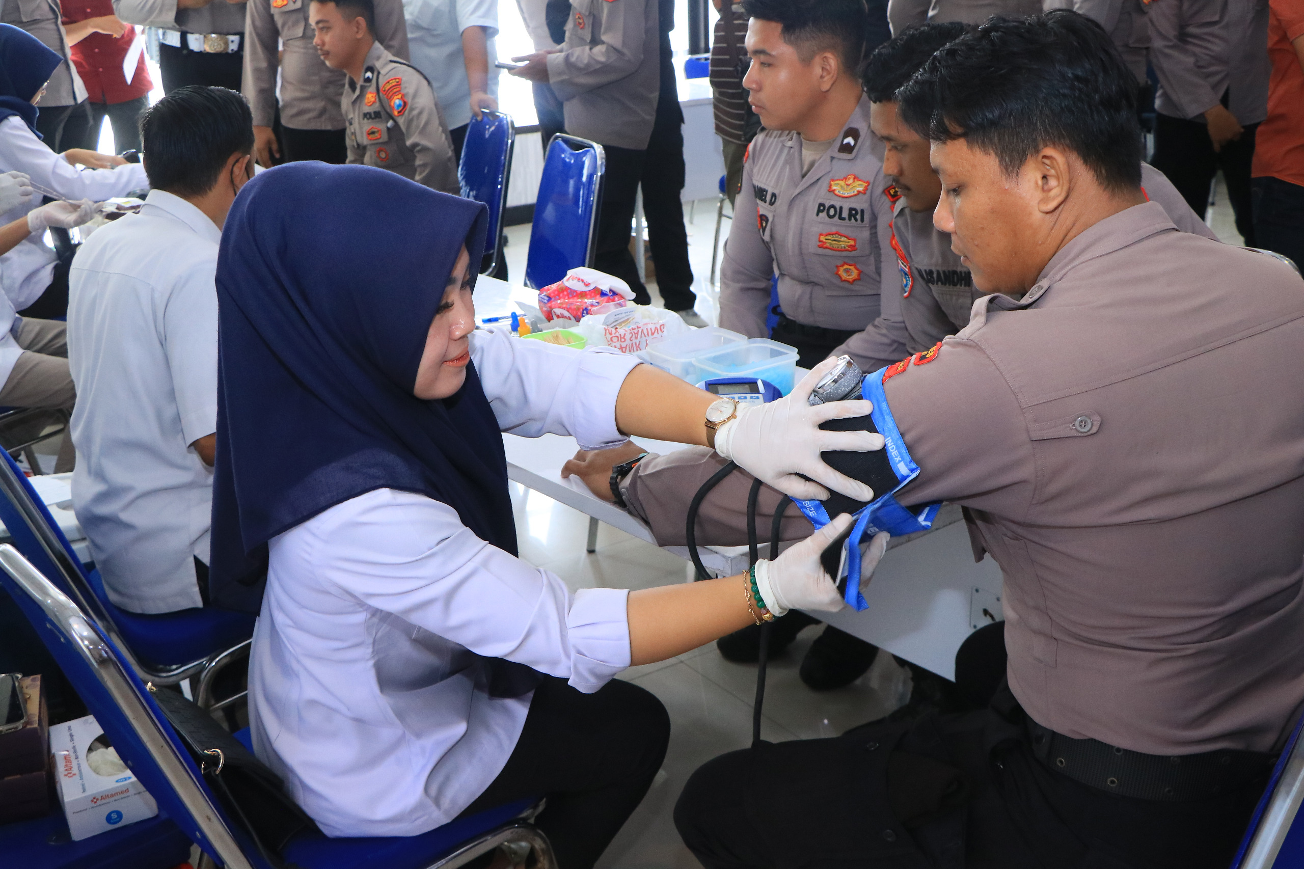 Selain pelaksanaan donor darah, petugas juga memberikan edukasi serta motivasi kepada seluruh peserta agar senantiasa menjaga pola makan, menerapkan gaya hidup sehat, dan menjaga kebugaran tubuh guna mendukung pelaksanaan tugas sehari-hari.