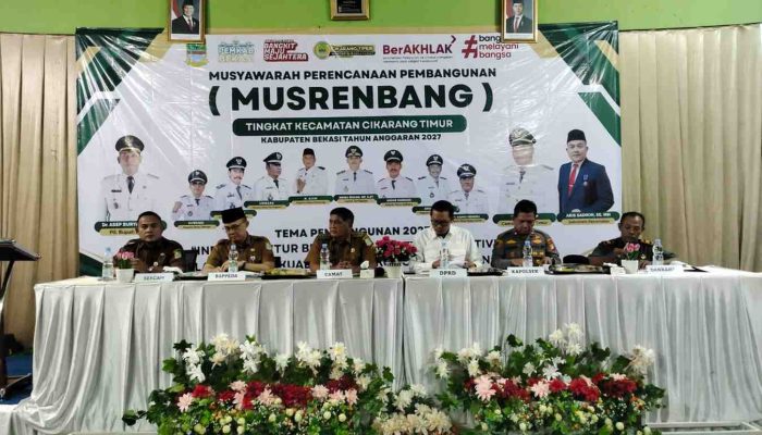 KAB BEKASI, Globalindo.Net – Dalam rangka mendukung percepatan pembangunan dan memastikan aspirasi masyarakat terakomodasi dengan baik, Kapolsek Cikarang Timur Kompol.Sugiharto.S.H, menghadiri kegiatan Musyawarah Perencanaan Pembangunan (Musrenbang) tingkat Kecamatan Cikarang Timur tahun anggaran 2027 yang digelar di Gedung PGRI Cikarang Timur Pada.Senin.(09/02/2026) dengan Mengusung tema “Infrastruktur Berkeadilan untuk Konektivitas Pelayanan Berkualitas dan Ekonomi Berkelanjutan.