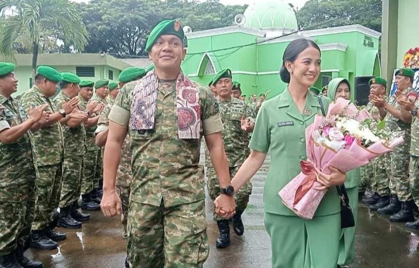 Keduanya disambut oleh Kasdim 0509/Kabupaten Bekasi Mayor Inf Sukoco bersama seluruh anggota militer dan Persit. Momentum penuh makna itu dilanjutkan dengan pengalungan selendang serta penyerahan hand bouquet bunga sebagai simbol penghormatan dan penerimaan dalam keluarga besar Kodim 0509/Kabupaten Bekasi.