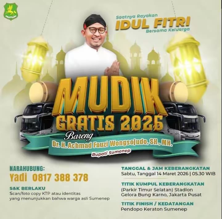 Dalam keterangannya pada Jumat (20/2/2026), Bupati Fauzi menegaskan bahwa mudik gratis telah menjadi agenda rutin setiap Ramadan sebagai bentuk kepedulian Pemerintah Kabupaten Sumenep kepada warganya. Menurutnya, Lebaran bukan sekadar perayaan keagamaan, tetapi juga momentum mempererat silaturahmi dan memperkuat ikatan kekeluargaan.