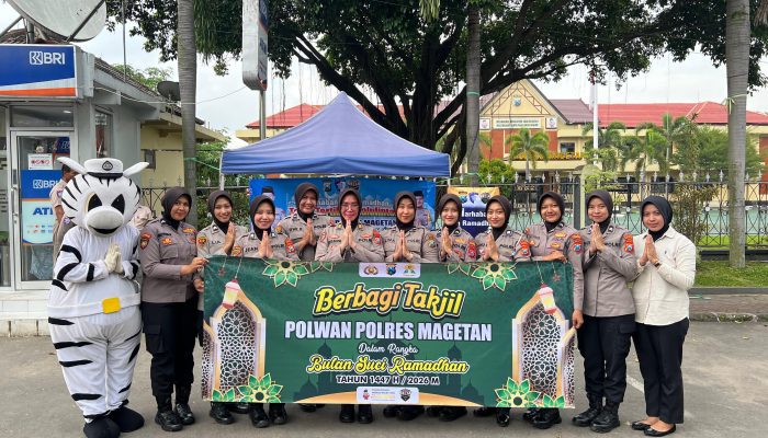 Magetan, Globalindo.net Suasana Ramadan 1447 H semakin terasa hangat dan penuh kebersamaan. Pada Rabu (25/2/2026), jajaran Polisi Wanita (Polwan) Polres Magetan menggelar kegiatan berbagi takjil kepada masyarakat dan para pengguna jalan yang melintas di depan Mako Polres Magetan.