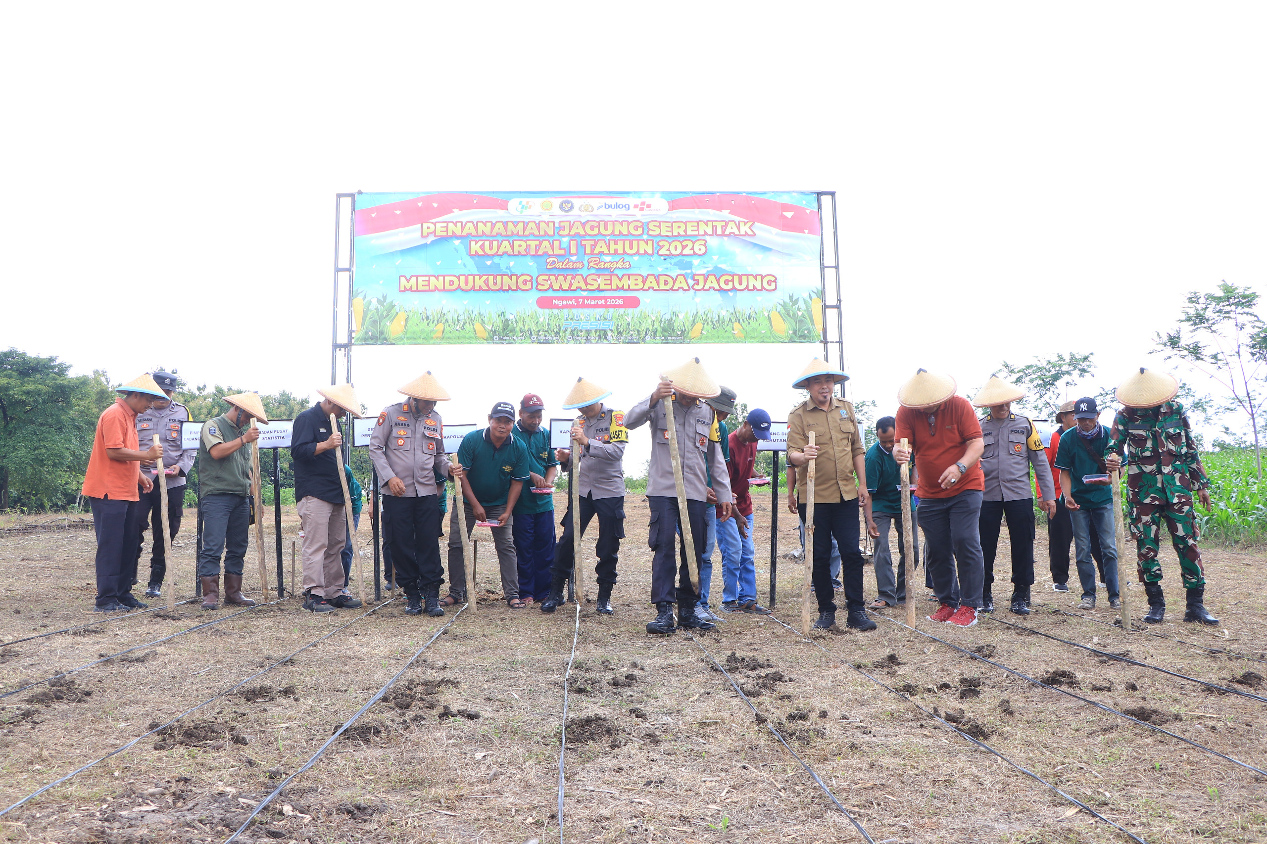 Kapolres Ngawi AKBP Prayoga Angga Widyatama, S.I.K., M.Si. mengatakan bahwa kegiatan penanaman jagung serentak ini merupakan bentuk dukungan Polri terhadap program pemerintah dalam memperkuat ketahanan pangan nasional.