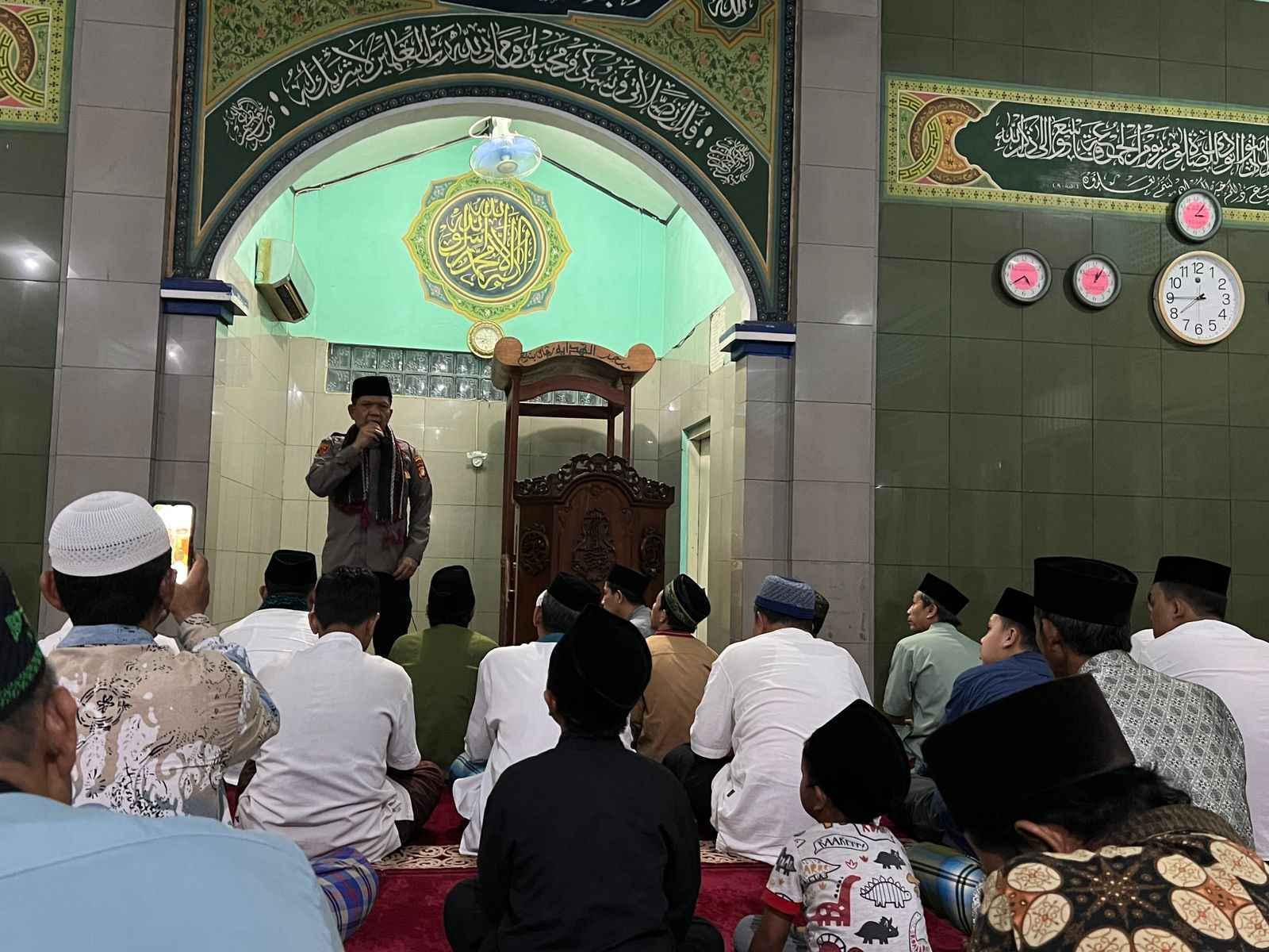 Dalam sambutannya setelah pelaksanaan shalat Tarawih berjamaah, Kapolsek Cikarang Timur Kompol Sugiharto.S.H menyampaikan beberapa poin penting terkait situasi keamanan wilayah seperti