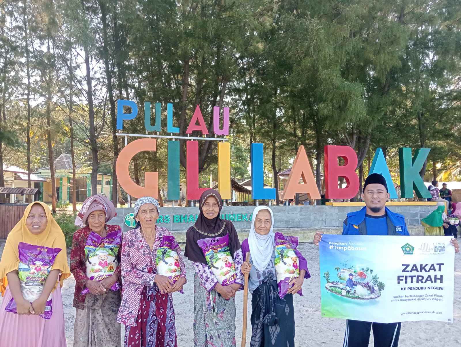 Dalam perjalanan tersebut, para relawan membawa sejumlah paket beras zakat fitrah yang akan disalurkan kepada masyarakat yang berhak menerima. Setibanya di Pulau Gili Labak, bantuan zakat fitrah kemudian dibagikan kepada warga kurang mampu dan para nelayan yang tinggal di pulau tersebut.