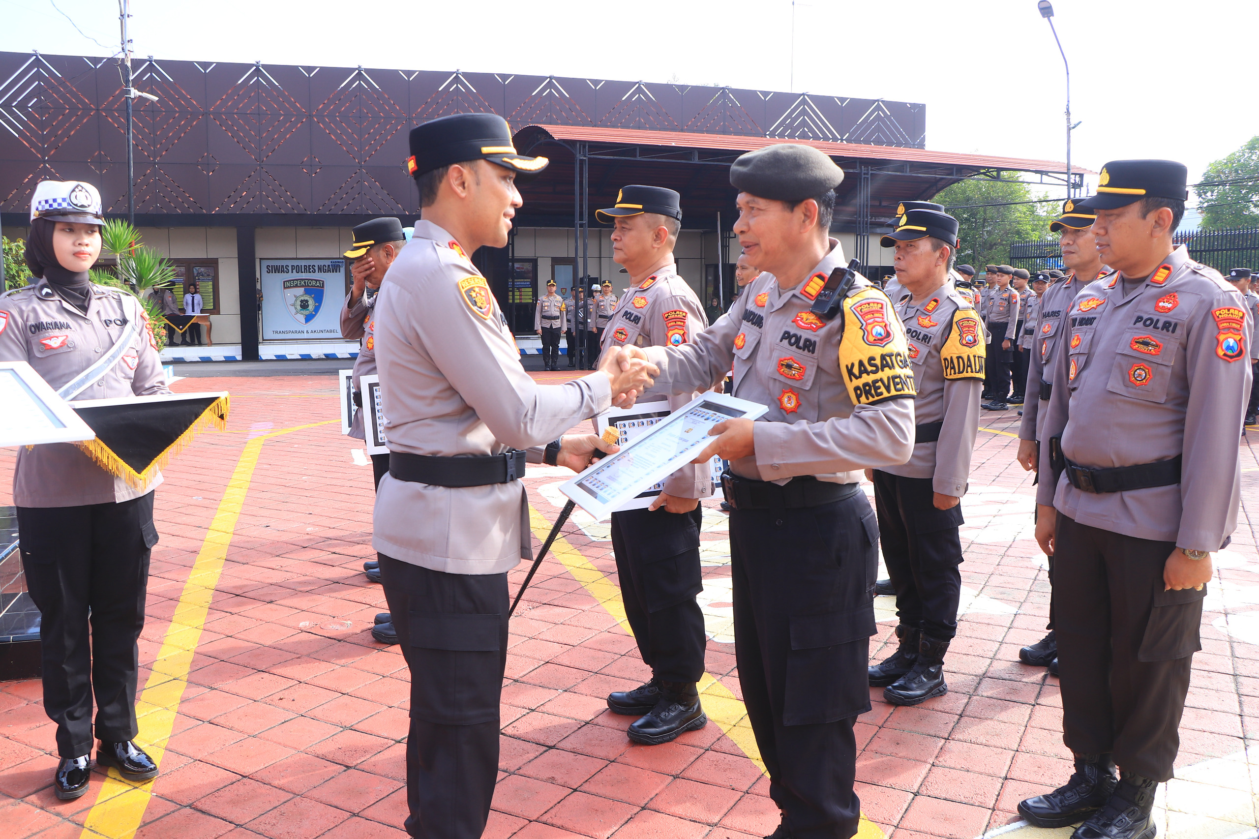 Ngawi, Globalindo.net Kapolres Ngawi Prayoga Angga Widyatama, S.I.K., M.Si., memimpin langsung upacara pemberian penghargaan kepada personel berprestasi di lingkungan Polres Ngawi. Kegiatan tersebut dilaksanakan di Lapangan Satya Haprabu Polres Ngawi.