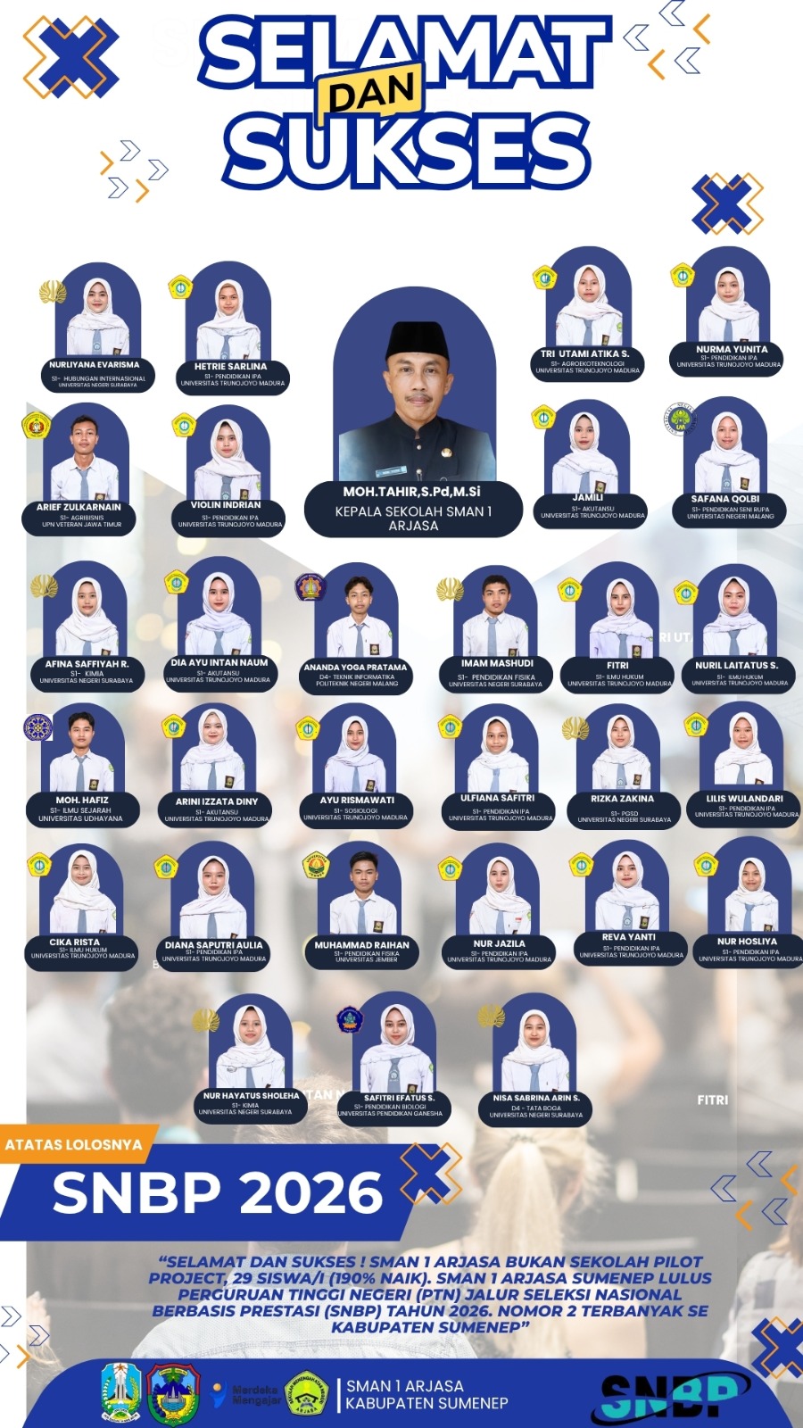 SUMENEP — Prestasi gemilang kembali ditorehkan oleh siswa-siswi dari wilayah kepulauan Madura. SMAN 1 Arjasa Kangean membuktikan kualitas pendidikannya meski bukan berstatus sekolah pilot project. Pada pengumuman Seleksi Nasional Berbasis Prestasi (SNBP) Tahun 2026, Kamis (2/4/2026), sebanyak 29 siswa SMAN 1 Arjasa dinyatakan sukses menembus berbagai Perguruan Tinggi Negeri (PTN) favorit.