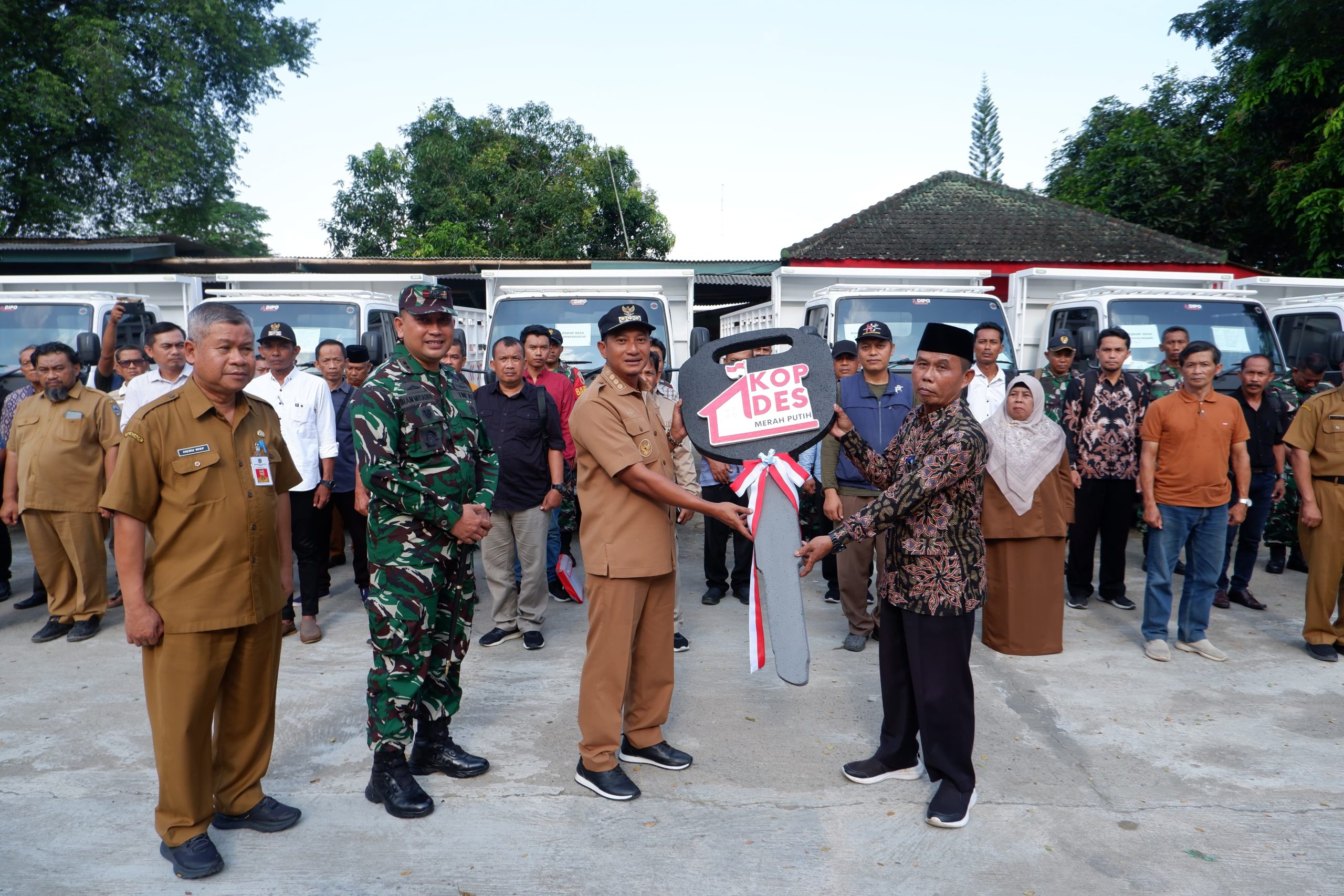 Kegitan tersebut turut di hadiri Dr. Ir. Heru Wiwoho Supandi Putra, M.Si Sekda Kab. Pacitan, Muhammad Ali Mustofa, S.Pi., M.M. Kepala Dinas Koperasi, Usaha Mikro dan Perindustrian Kabupaten Pacitan, Sugiyem, AP, M.Si (Kepala Dinas Pemberdayaan Masyarakat dan Desa (PMD) Kab. Pacitan, Kapten Arm. Toni Siswanto Pasi Ter Kodim 0801/Pacitan, Camat Se-Kab Pacitan, 23 Kepala Desa dan Kepala KDMP penerima kendaraan Truk dan Babinsa Kodim 0801/Pacitan dengan penanggungjawab Letkol Arh. Imam Musahirul, S.H., M.I.P Dandim 0801/Pacitan.