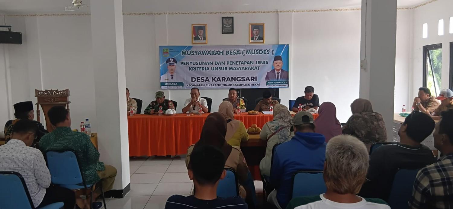 kegiatan yang dimulai pukul 14.00 WIB ini dihadiri oleh sekitar 100 peserta, termasuk Kepala Desa Karangsari, Umbara, Ketua BPD Aswin Sonjaya, serta jajaran tokoh masyarakat. Dalam rapat tersebut, ditetapkan bahwa masing-masing dari 21 RT di Desa Karangsari akan diwakili oleh empat orang—terdiri dari tiga laki-laki dan satu perempuan—dengan kriteria yang mencakup tokoh masyarakat, tokoh agama, tokoh pendidikan, dan perwakilan perempuan.