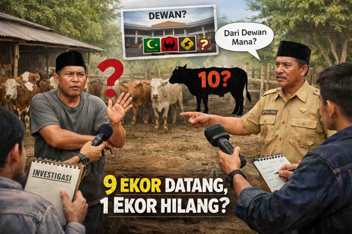 Namun fakta di lapangan menunjukkan hal lain. “Memang bantuan sapi itu sepuluh ekor, tapi waktu diterima cuma sembilan ekor, yang satu tidak ada,” ujar warga sekitar.