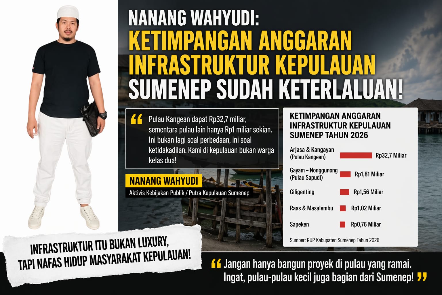 Kondisi ini menuai kritik pedas dari kalangan masyarakat, khususnya putra asli daerah kepulauan. Menurut Nanang Wahyudi, pengusaha asal Sapudi, perbedaan angka yang sangat signifikan ini bukan lagi persoalan teknis perencanaan, melainkan soal keadilan.